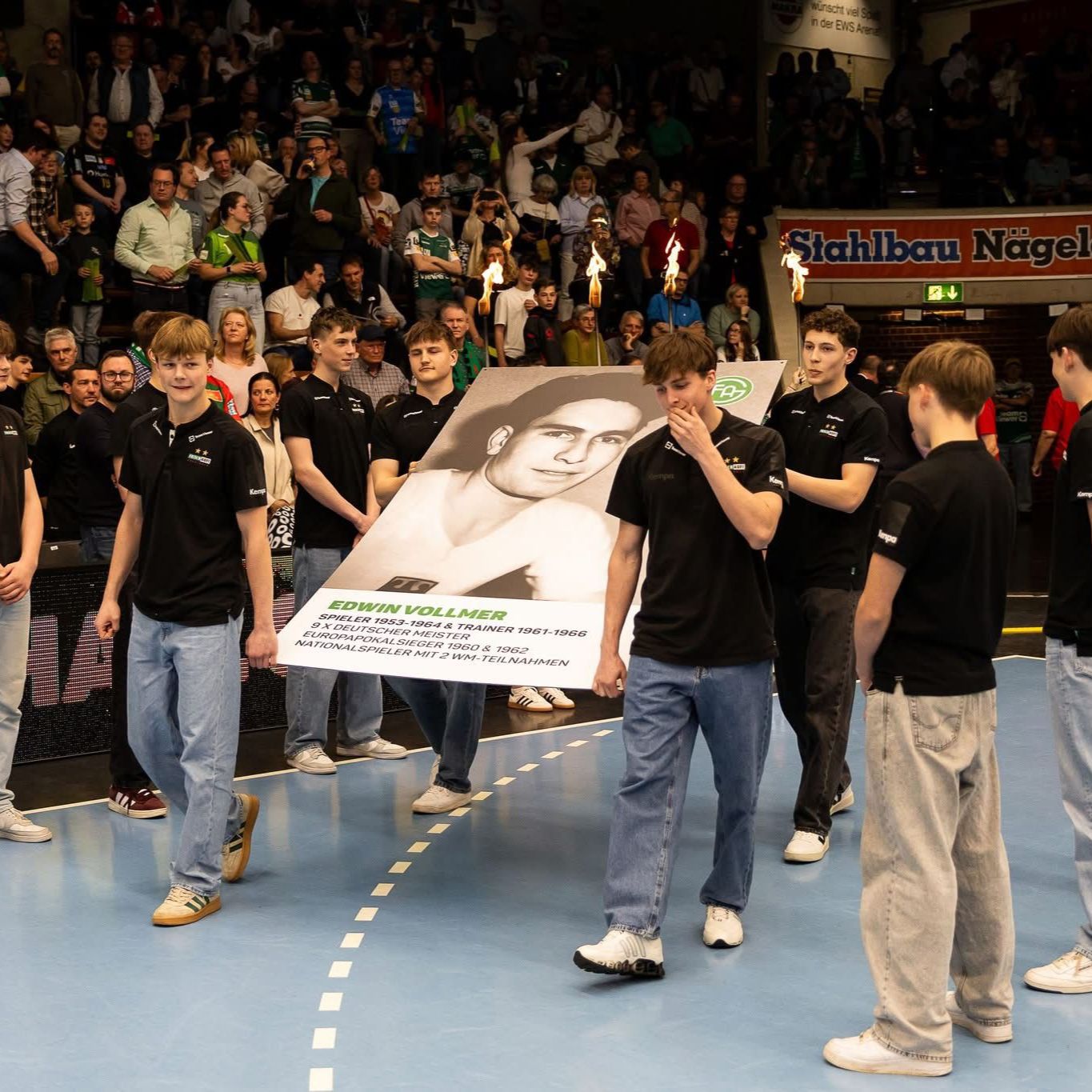 Die Ehrung einer echten Handball-Legende sorgte für große Emotionen und Gänsehaut in der Halle. Neben dem laufenden Spiel wurde damit ein bedeutender Beitrag zur Vereinsgeschichte gewürdigt – ein Moment, der Fans und Beteiligte gleichermaßen bewegte.